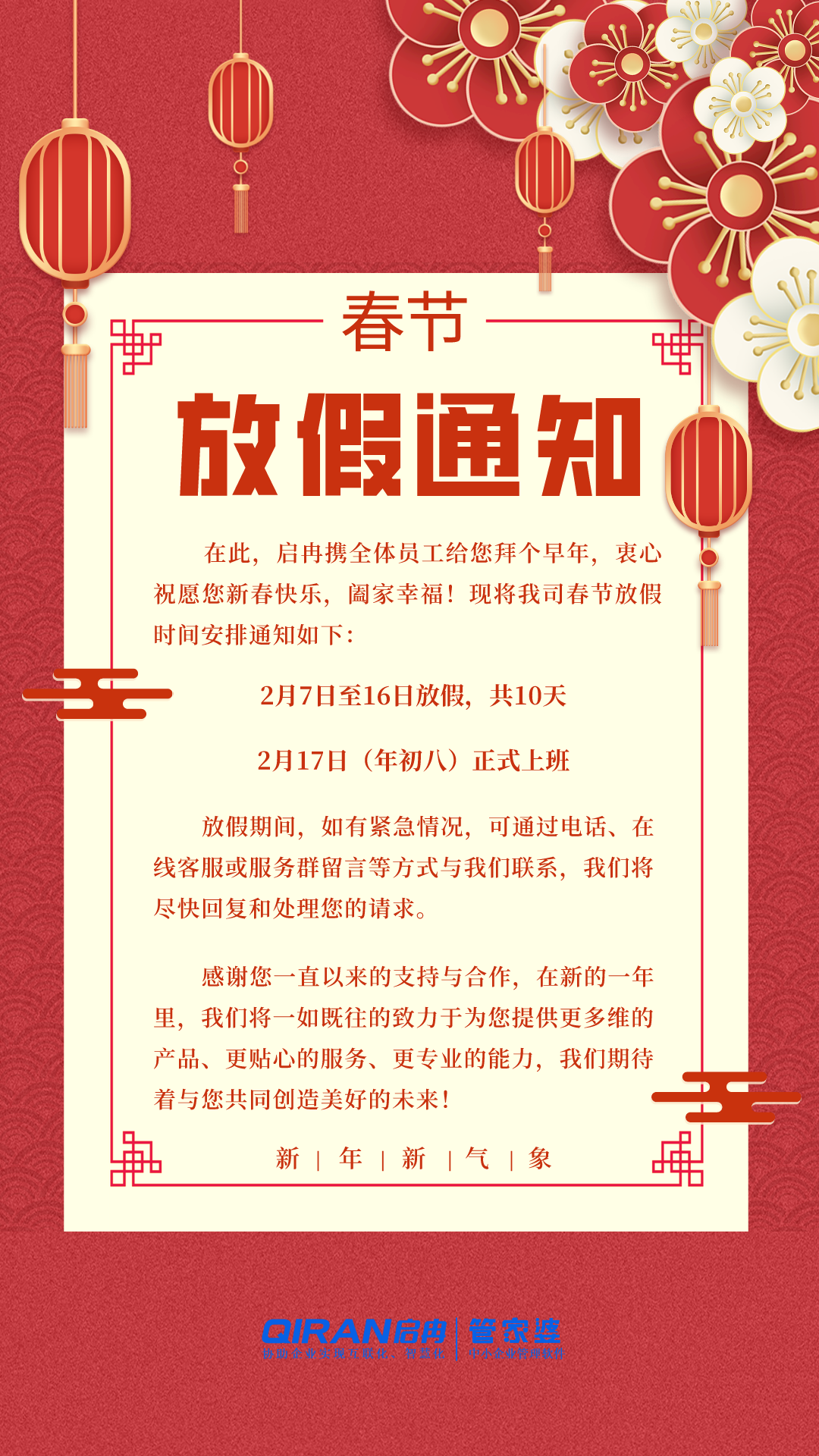 > 龍年大吉 | 啟冉軟件2024年春節放假通知