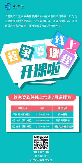 【管家婆軟件X啟冉軟件】管家婆在線課堂7月課程表